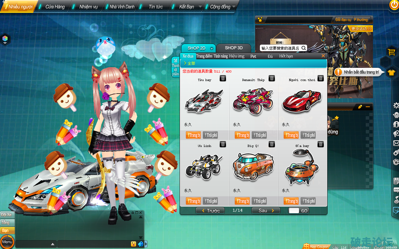 越南服QQ飞车一键端/带所有车+服饰+汉化补丁+舞蹈补丁/所有车lv6满级宝石