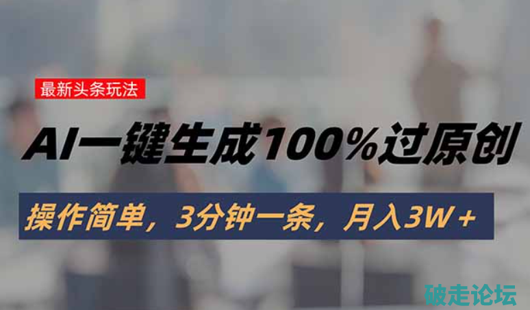 头条最新玩法,AI一键生成100%过原创,操作简单,3分钟一条,月入3W+