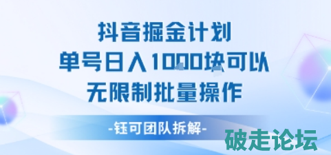 抖音掘金计划单号日入1k可以无限制批量操作