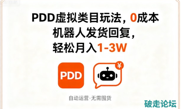 PDD虚拟类目玩法,0成本,机器人发货回复,轻松月入1-3W