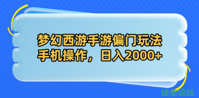 梦幻西游手游偏门玩法,手机操作,日入2000+