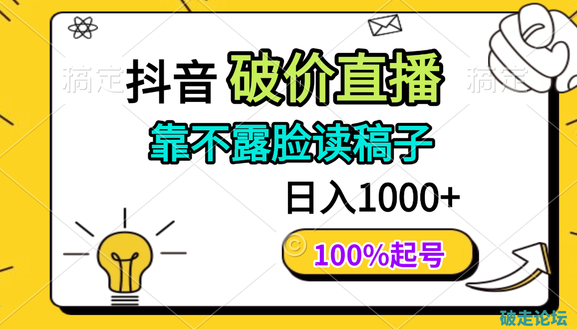 抖音破价直播,靠不露脸读稿子, 日入多张,100%起号