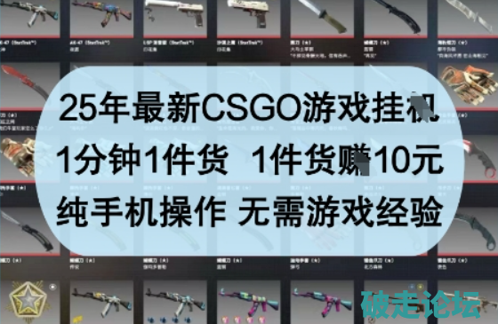 25年最新CSGO游戏挂G,1分钟1件货,1件货挣10元,纯手机操作,无需游戏经验