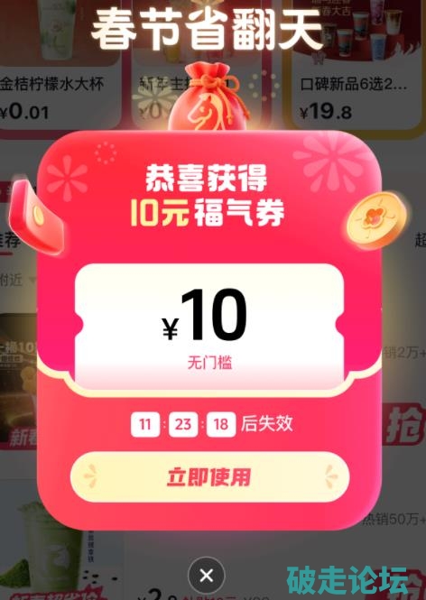 送免单25元奶茶免费领取,速度2.6