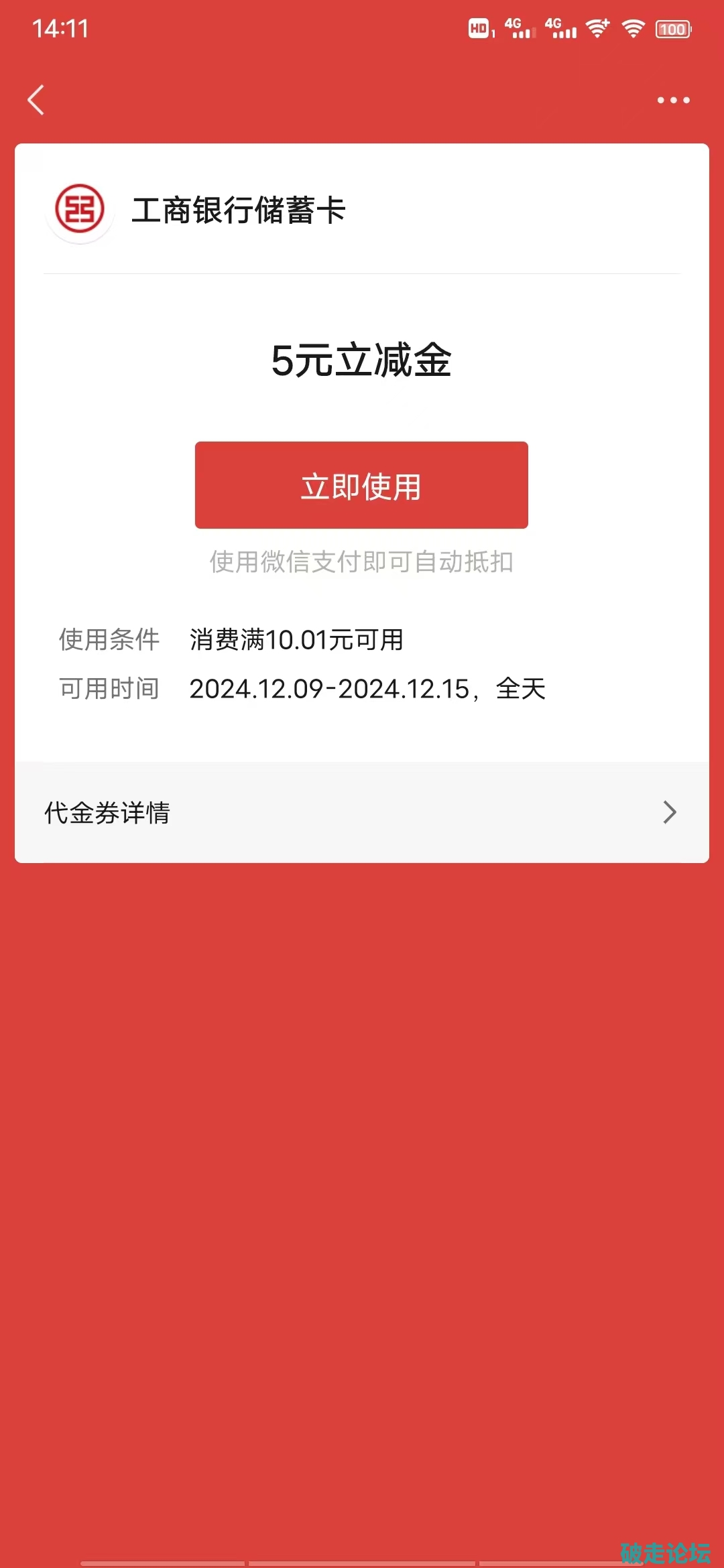 工行 蚊子腿立减金12.14