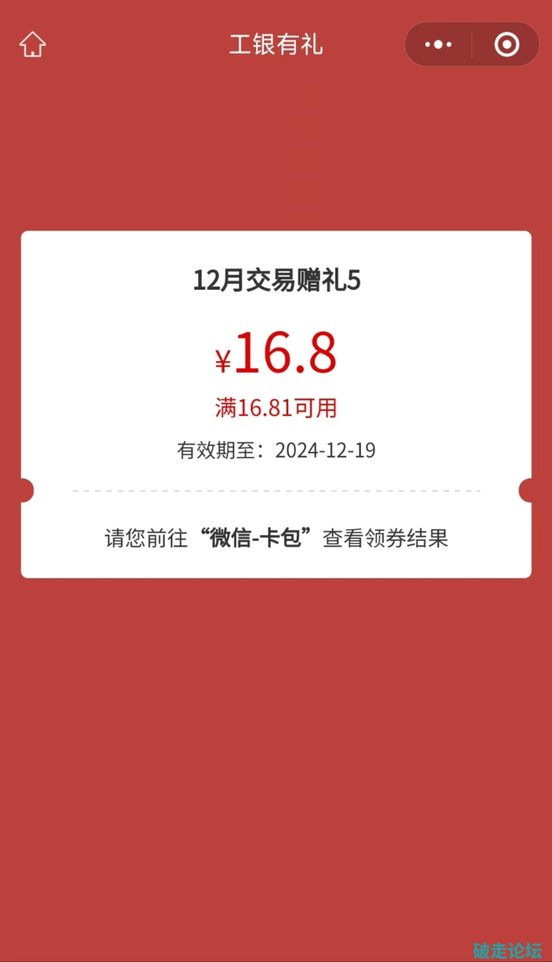 工行微信立减金12.9