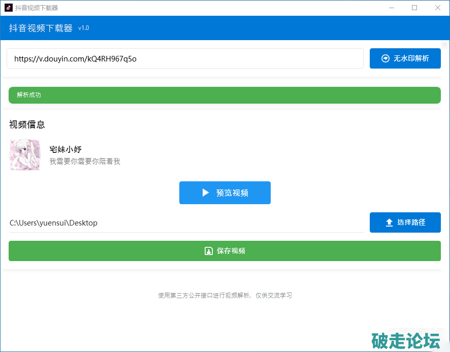 抖音视频下载工具 v1.0 自用分享