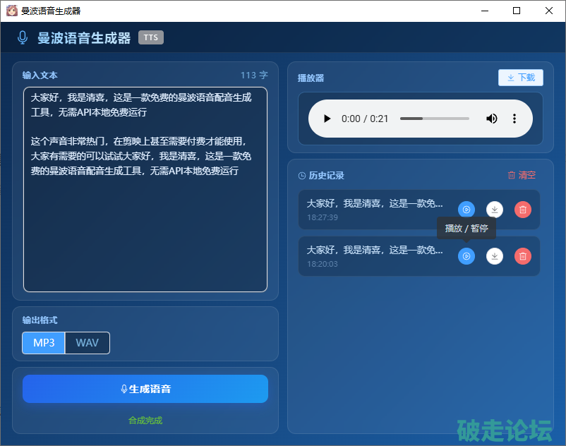 曼波配音免费一键生成,文字转语音AI配音功能 Manbo TTS 3.7