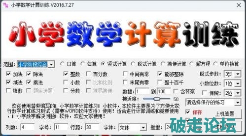 小学数学计算训练v2016.7.27 试卷生成神器,各种组合。