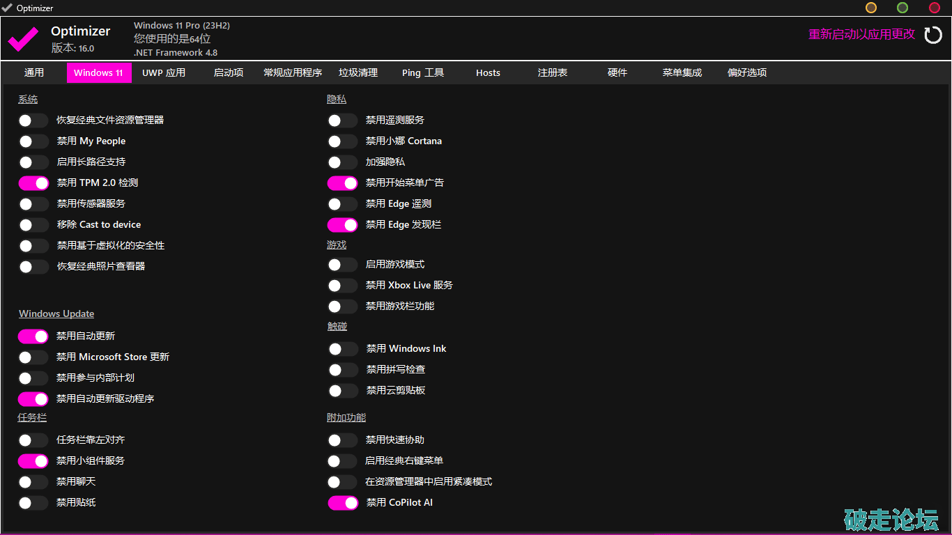系统优化工具Optimizer v16.0 单文件版