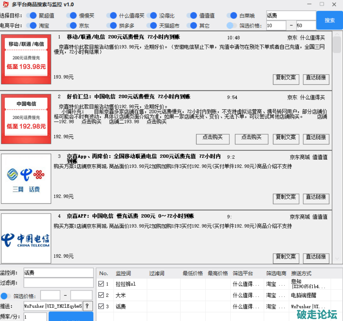 多平台商品信息搜索与监控 v1.0 支持什么值得买等多个网站的搜索与关键词监控
