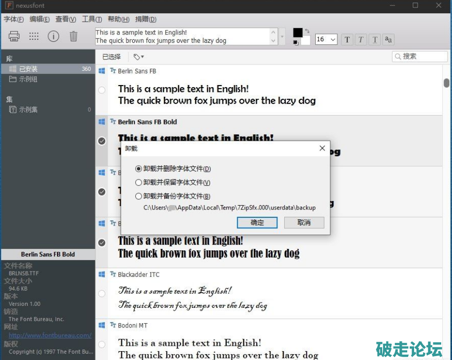 短小精悍NexusFont字体预览管理器 V2.7.1(绿色单文件版)
