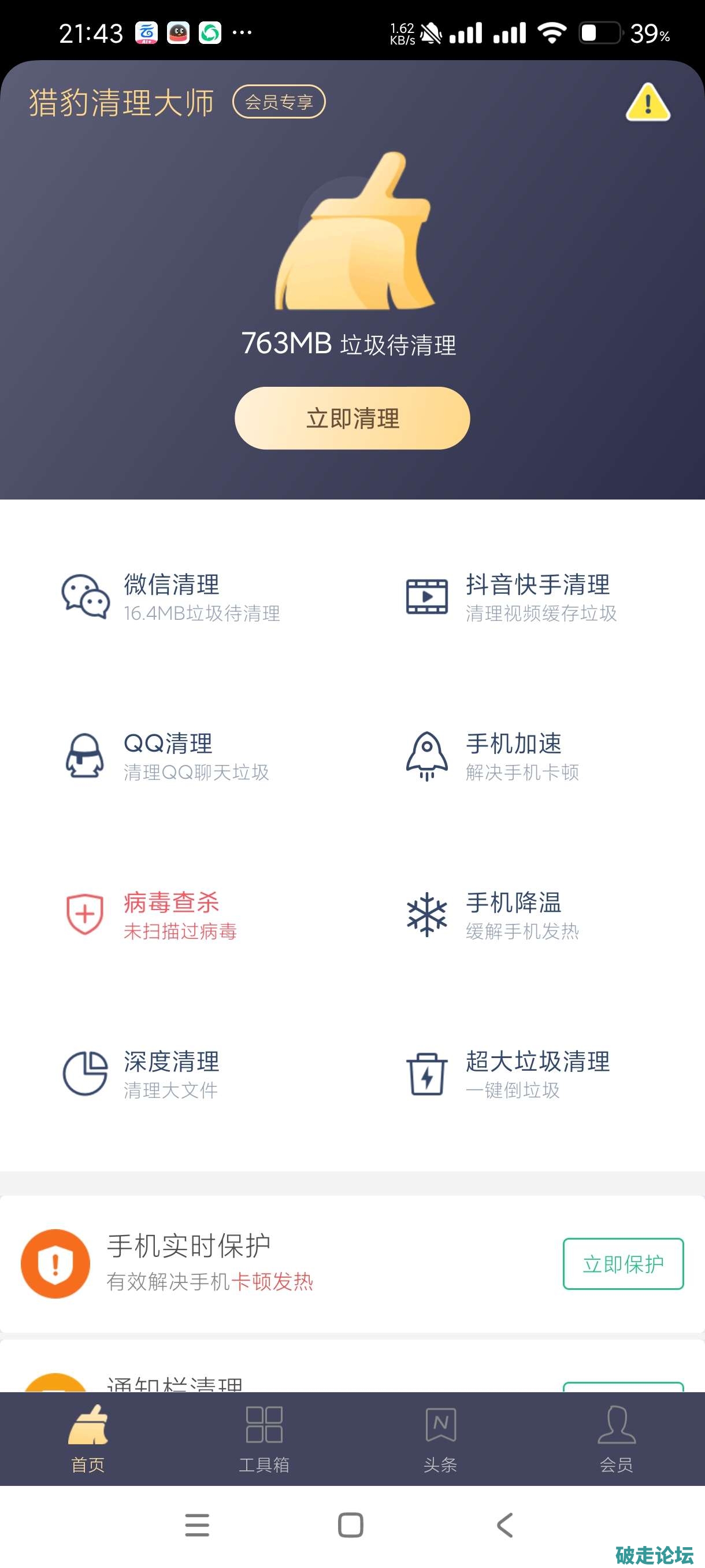 猎豹清理大师 一键清理 彻底解决卡顿
