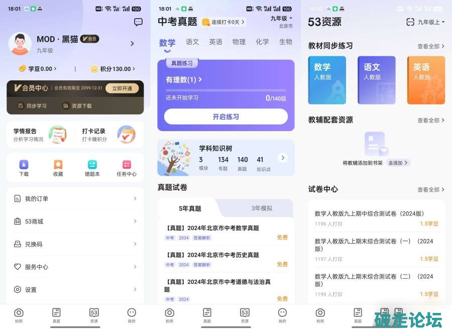 53伴学解锁会员全学科教材真题学习9.22