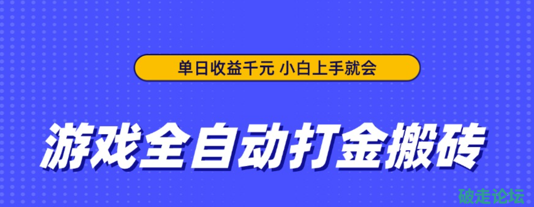 游戏全自动打金搬砖,单日收益千元,小白上手就会