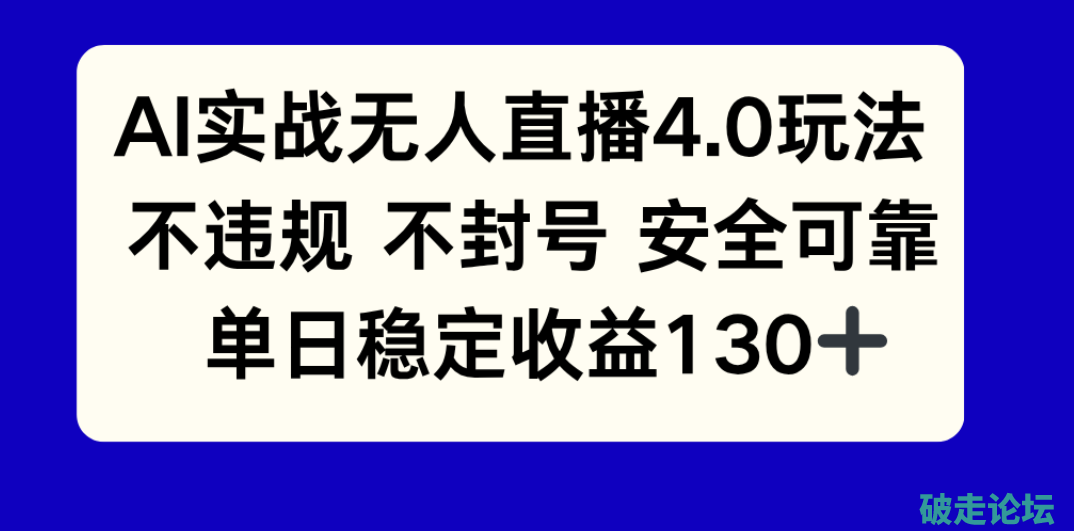 )AI实战无人直播4.0玩法, 不违规不封号,单日稳定收益130+