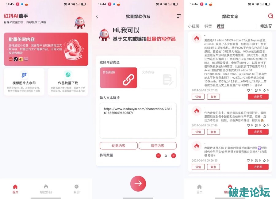 红抖AI助手是一款专为自媒体创作者设计的强大免费工具。它集成了视频工具、文案工具和图片工具三大类功能,每个类别下都有许多实用的小工具帮助用户完成各种任务。视频工具支持从20多个平台无水印提取视频,并提供视频二次创作、真人配音、视频字幕提取等功能;文案工具则基于AI技术进行改写,包括AI爆款仿写和生成视频的爆款文案等;图片工具提供了图片去重、图片识别文字、图生文、去水印等功能。这款工具特别适合需要高质量素材和创意内容的自媒体创作者使用。
